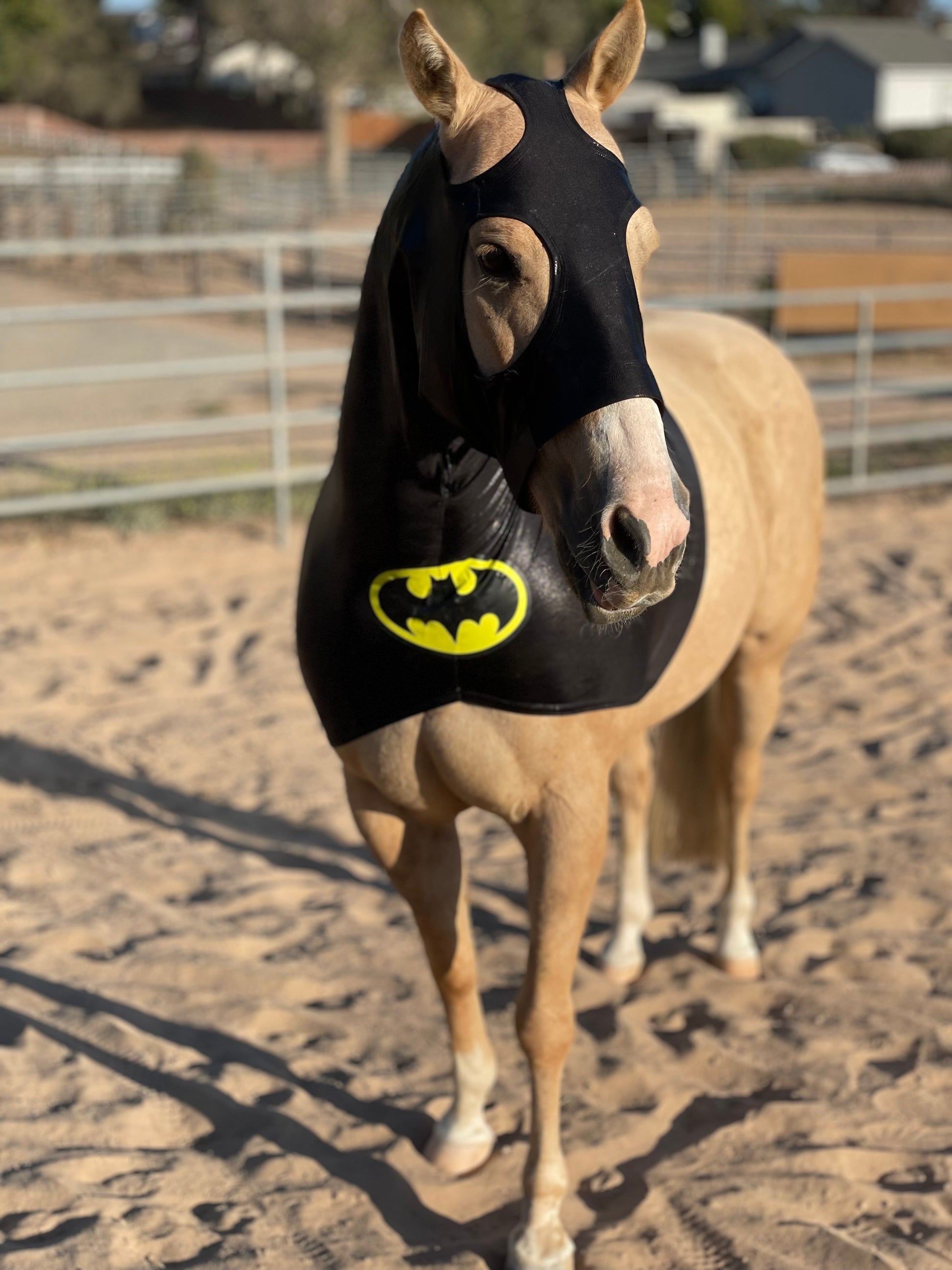 Reinforced elastic noseband and 3” heavy duty elastic bellyband with Velcro closures. This is a pullover with a 3/4 separating zipper.