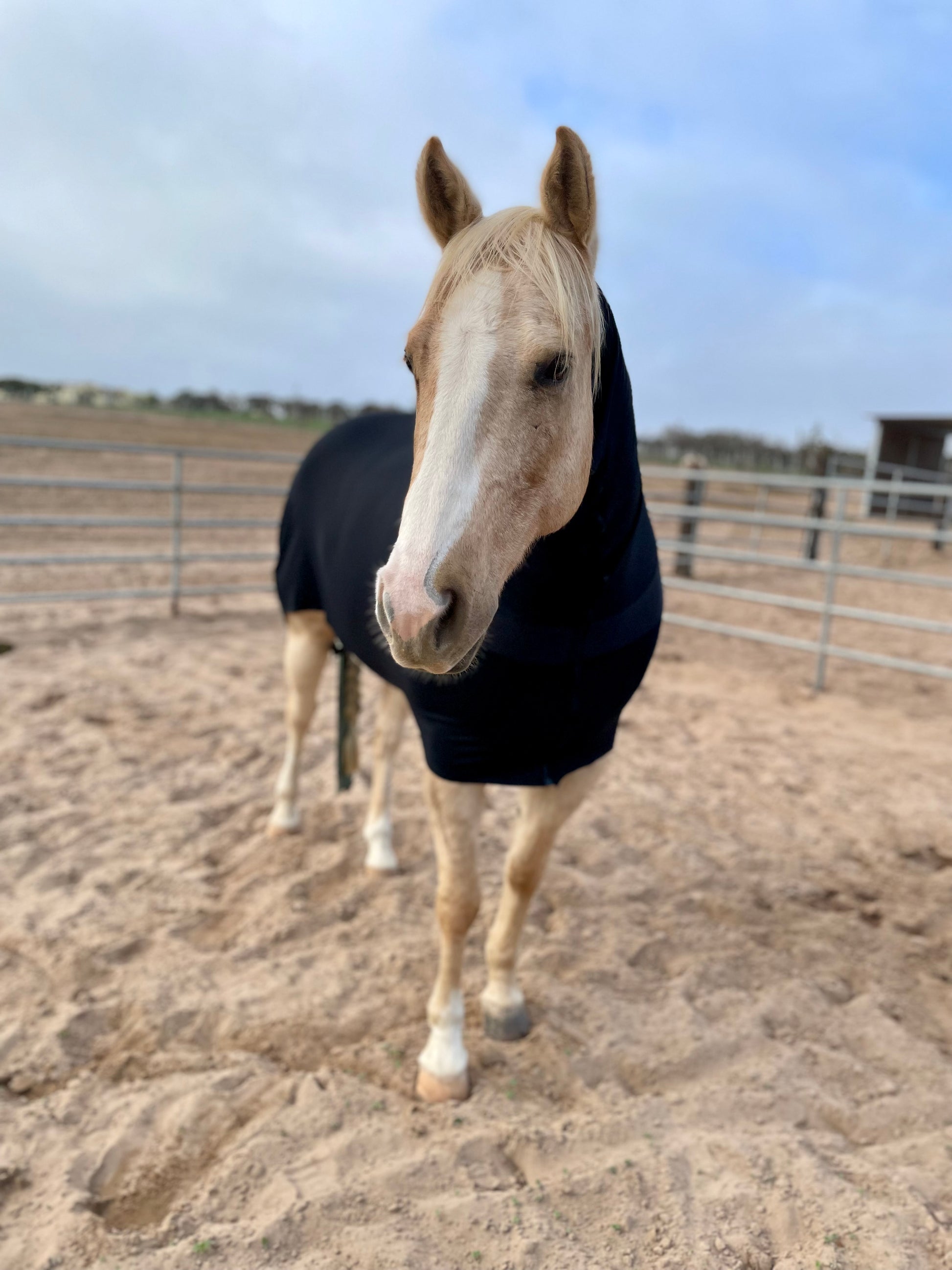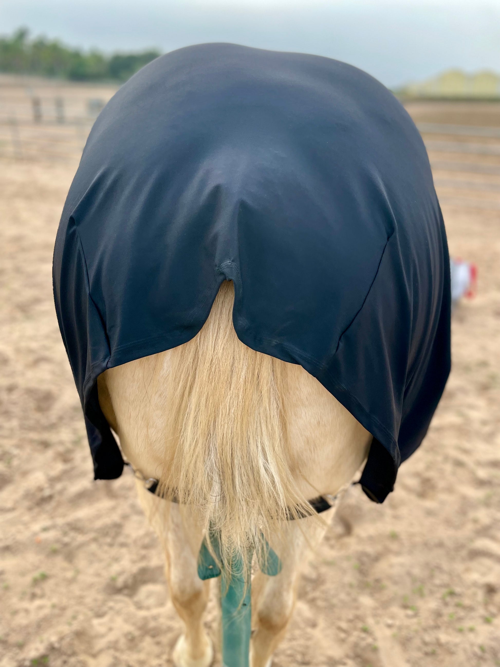 Sizing is determined by blanket size. Perfect for horses that need less on their face!Hand wash in cold water with mild detergent. Line dry only. Fasten all velcro before washing. 80% nylon 20% spandex.