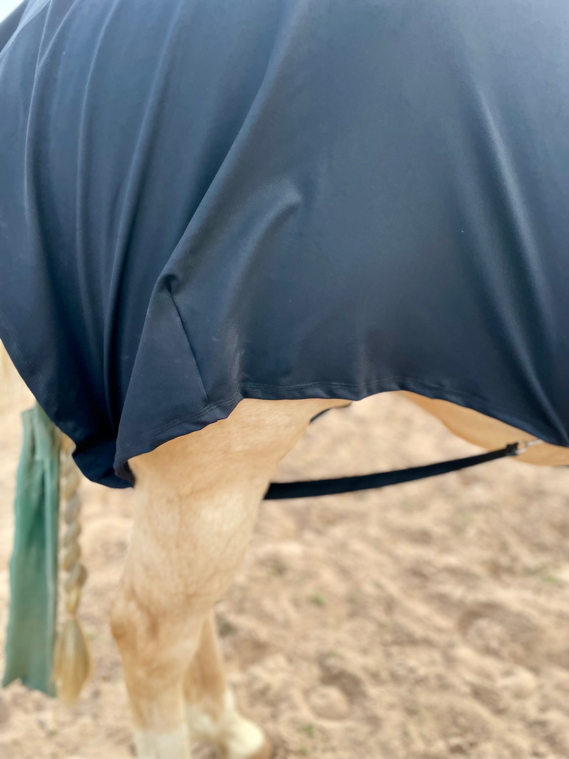 This fabric is designed to be durable and dimensionally resilient (this one’s for you blanket destroyers!), making it a reliable choice for a sleazy that has to endure excessive movement like turnout.