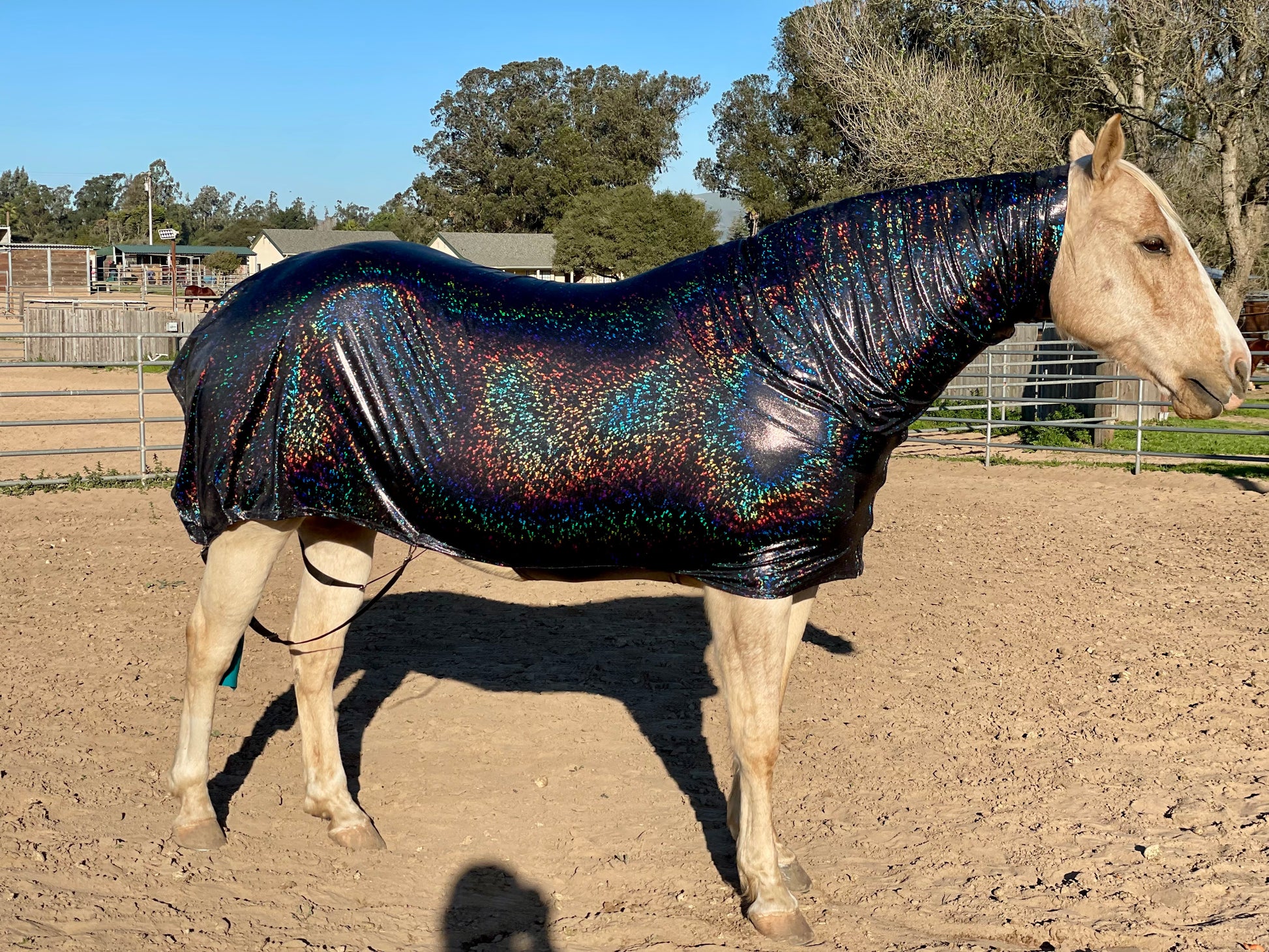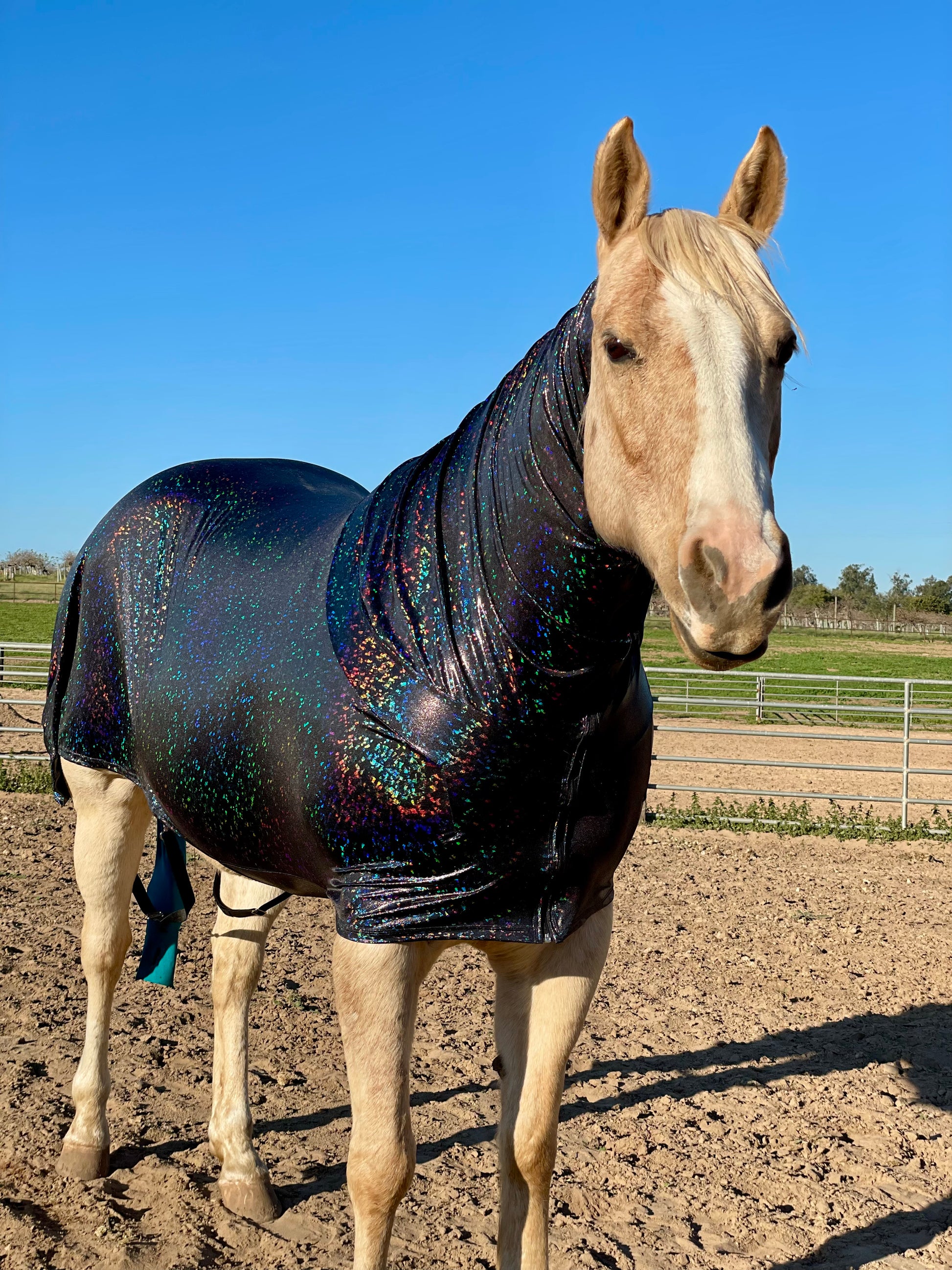 Horse in photos is 15.2 hh, 1300 lbs, 78" blanket modeling a Large Sleazy