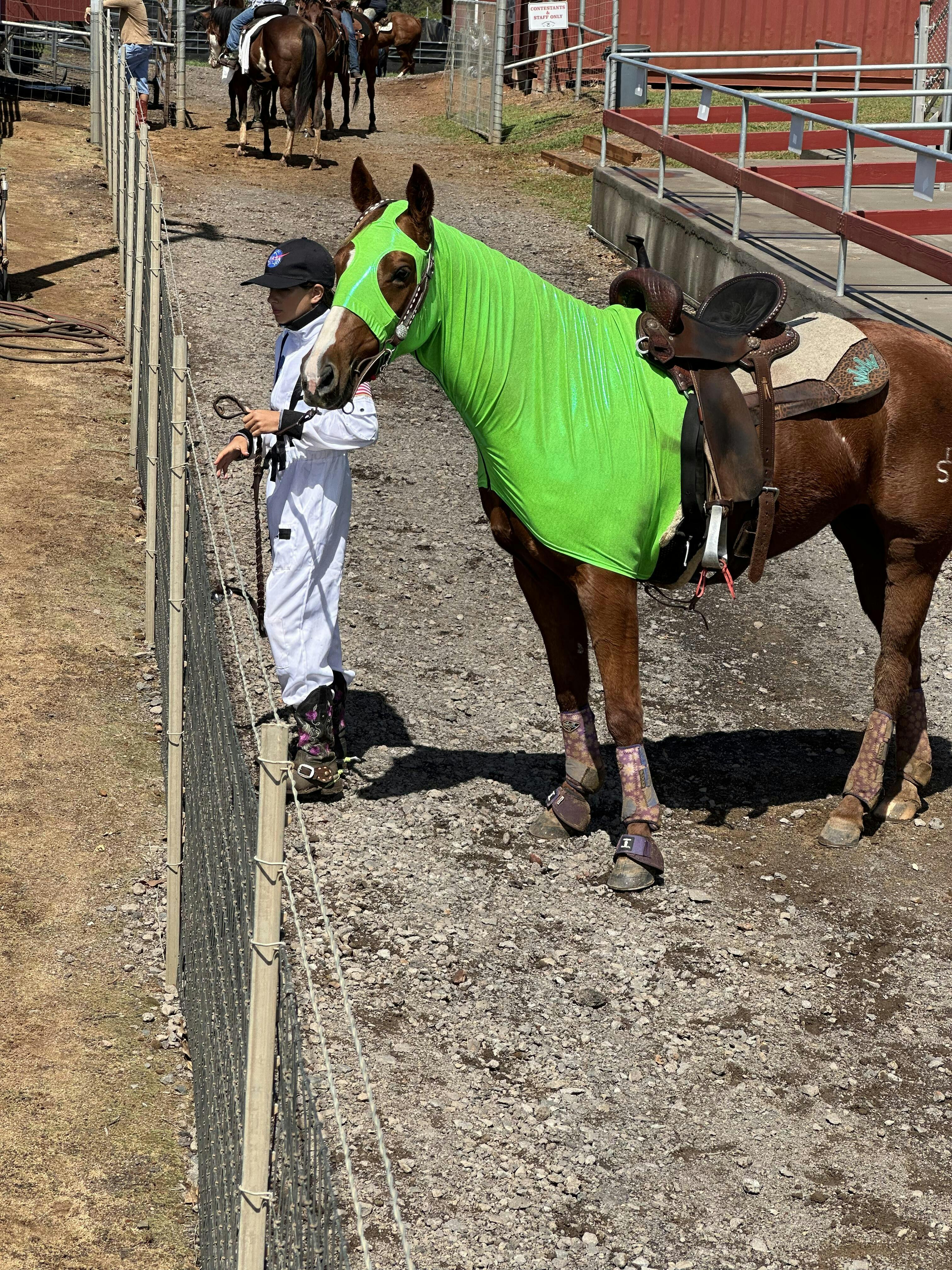 **Horse in photo is 1150 lbs, 15.1, QH wearing size 78” blanket is wearing a LARGE hood.**